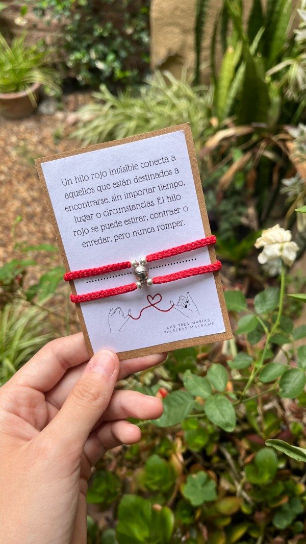 Hechas a mano en hilo encerado, estas pulseras se atraen al acercarse, uniendo sus imanes como símbolo de conexión y complicidad. Un detalle simple, delicado y perfecto para llevar con esa persona que te acompaña en cada momento.