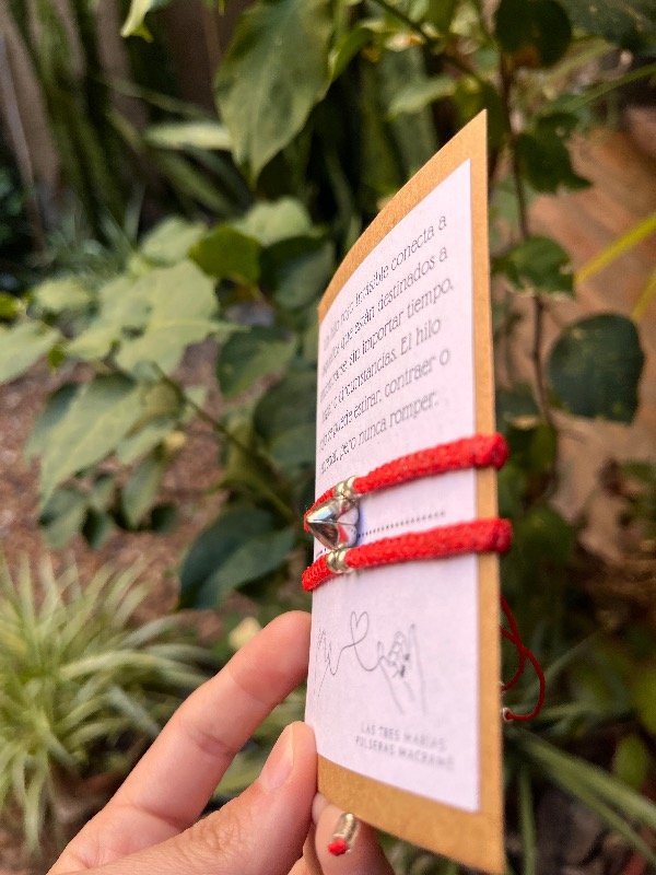 Hechas a mano en hilo encerado, pensadas para unir dos muñecas con un mismo gesto: cuando se acercan, los imanes forman un corazón completo. Un detalle simbólico, resistente y perfecto para compartir con quien te acompaña en cada capítulo.